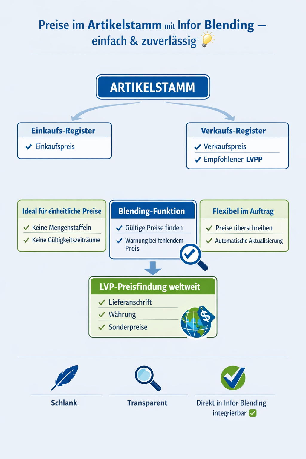 Blending stellt sicher, dass immer ein gĂĽltiger Preis gefunden wird, sonst erfolgt eine Warnung.